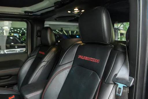 Ghế được bọc da màu đen, trong khi logo Rubicon được thêu bằng chỉ khâu màu đỏ ở mặt lưng. Hàng ghế trước không có nút chỉnh điện mà phải thao tác hoàn toàn bằng cơ.